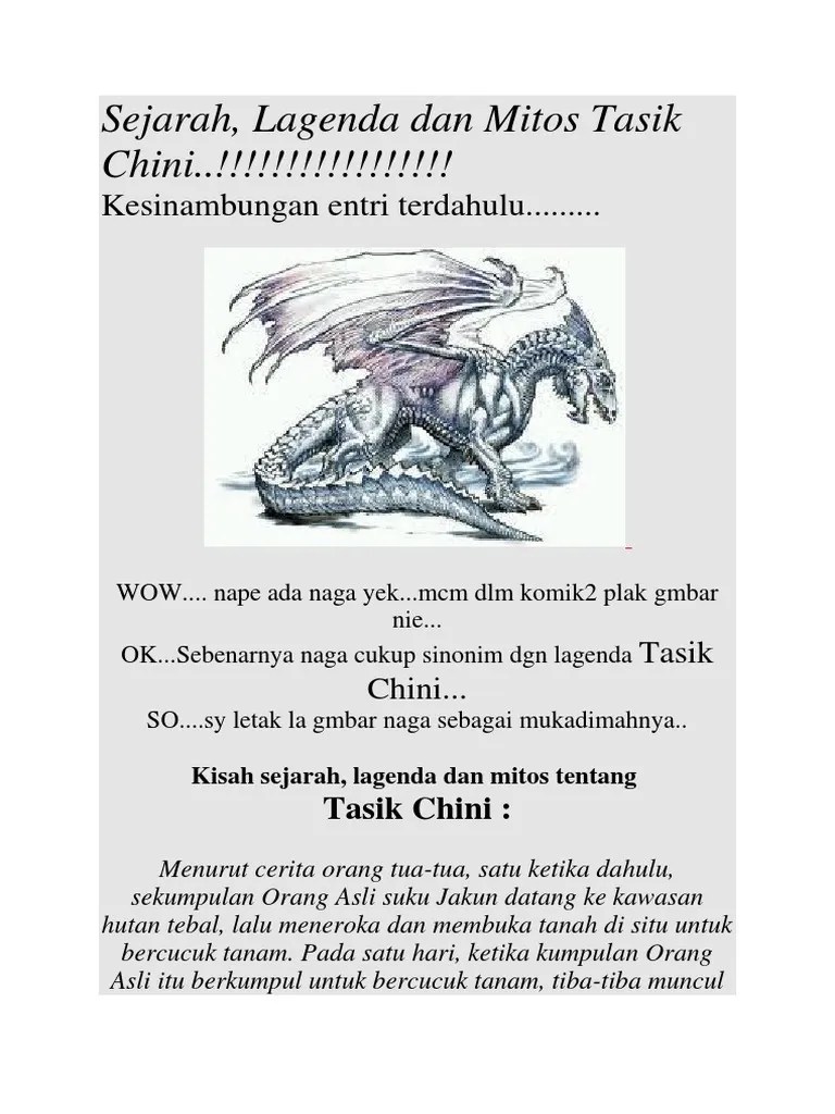 Pada saya sebagai orang bukan anak jati negeri pahang saya menganggap kisah "naga tasik chini" adalah sebuah lagenda & kisah yang tak. ٢٩ جمادى الأولى ١٤٣٦ هـ. ٨ ذو القعدة ١٤٤١ هـ. ٣ جمادى الأولى ١٤٤٢ هـ. Read naga tasik chini from the story legenda melayu by rotigardeniaa (erry lapar) with 3814 reads. Merujuk kepada legenda orang asli, tasik tersebut didiami oleh satu naga yang dikenali sebagai naga seri gumum.